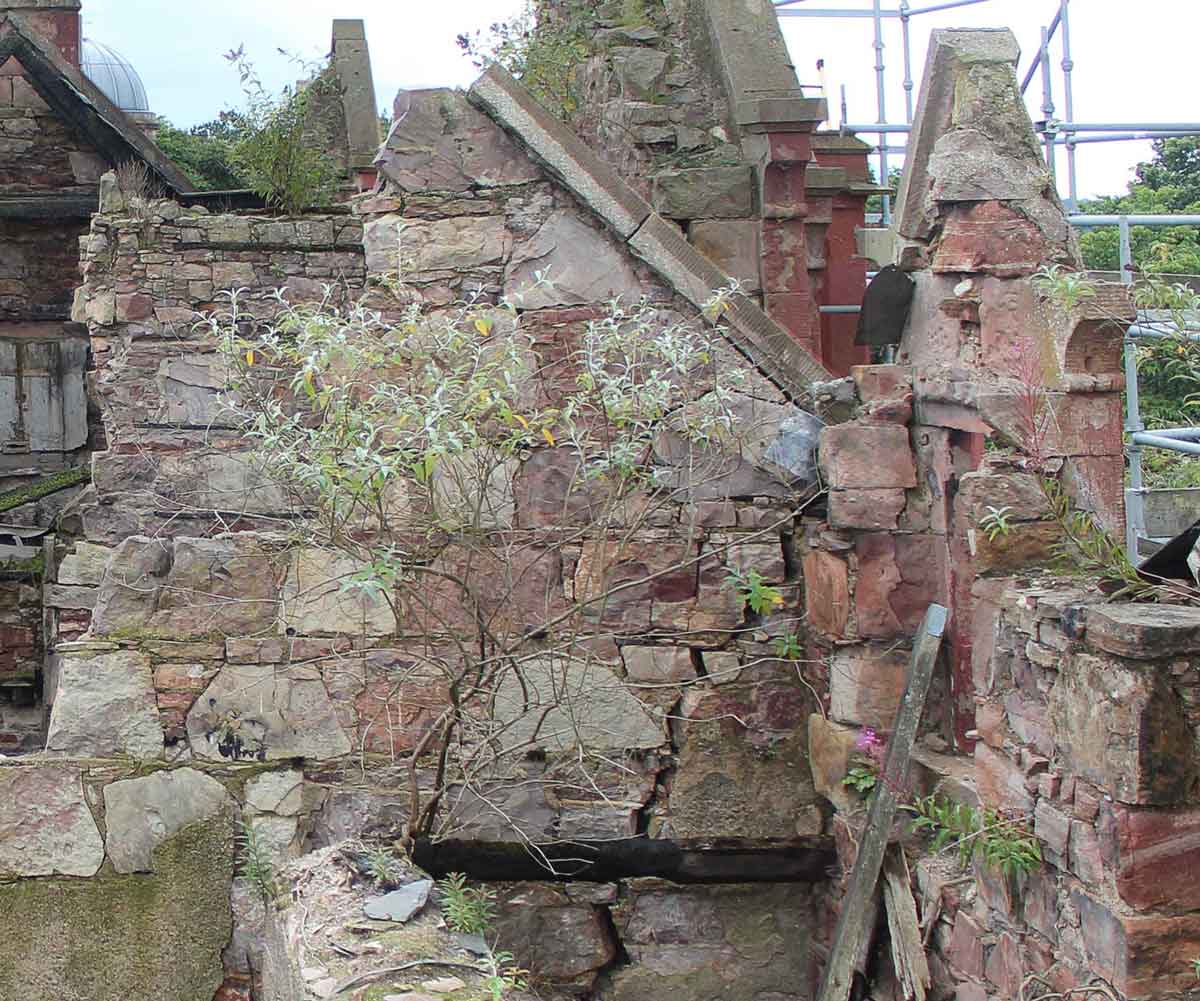 We anticipated a bit of repair and maintenance to this chimney. It looked in reasonable condition, but when repair work begins, we begin to see just how much of an impact the weather has had. 150 years battling with the highland weather has taken its toll, not helped by fixings for an aerial. Up close it looks bad but once our stone mason has tidied it all up, replaced a couple of stone blocks and repointed the joints, it will be fit for another 150 years.